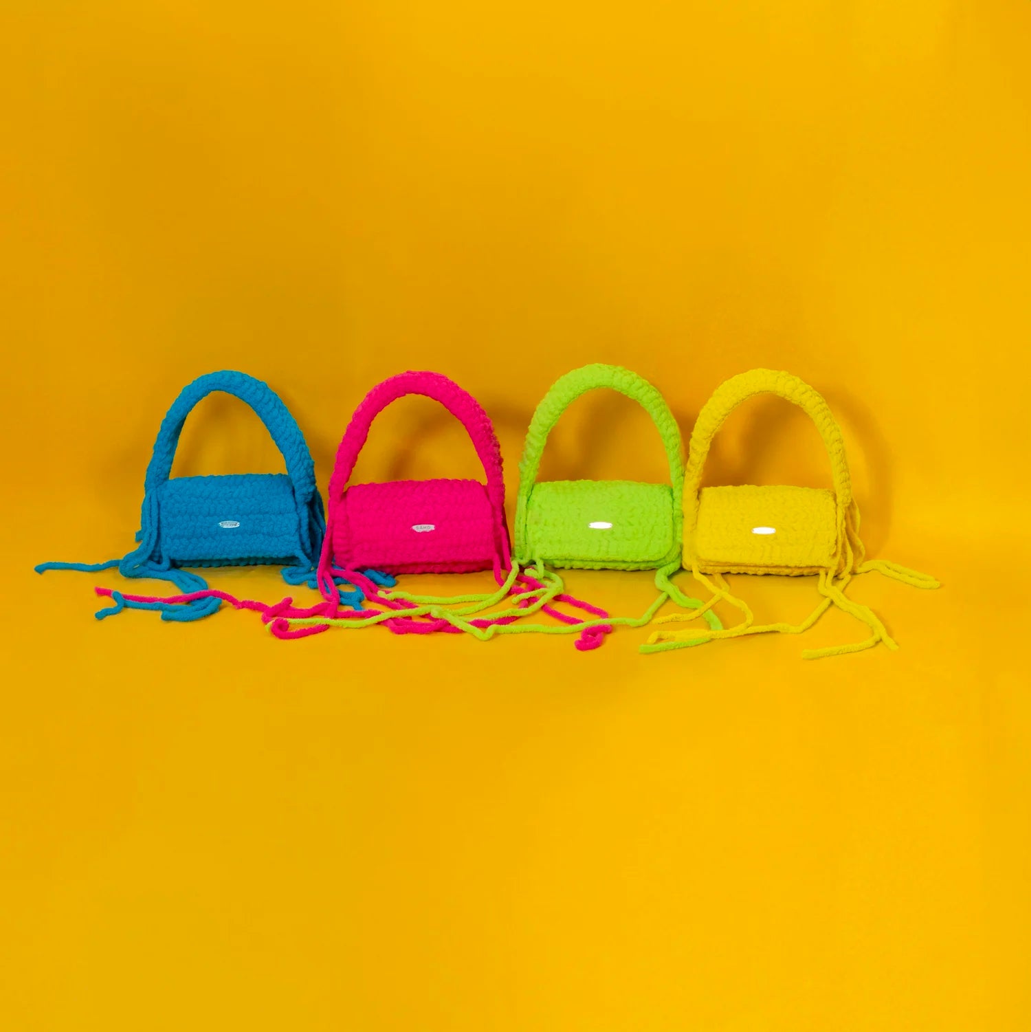 The rounded barrel silhouette gives the bag its signature charm. It's cute with a twist, while the chunky crochet texture creates a plush, cozy feel you can see and feel. A thick, cushioned handle provides structure without stiffness, making the bag comfortable to carry while still holding its shape. Extra-long ties add movement, personality, and a subtle sense of attitude as you move.